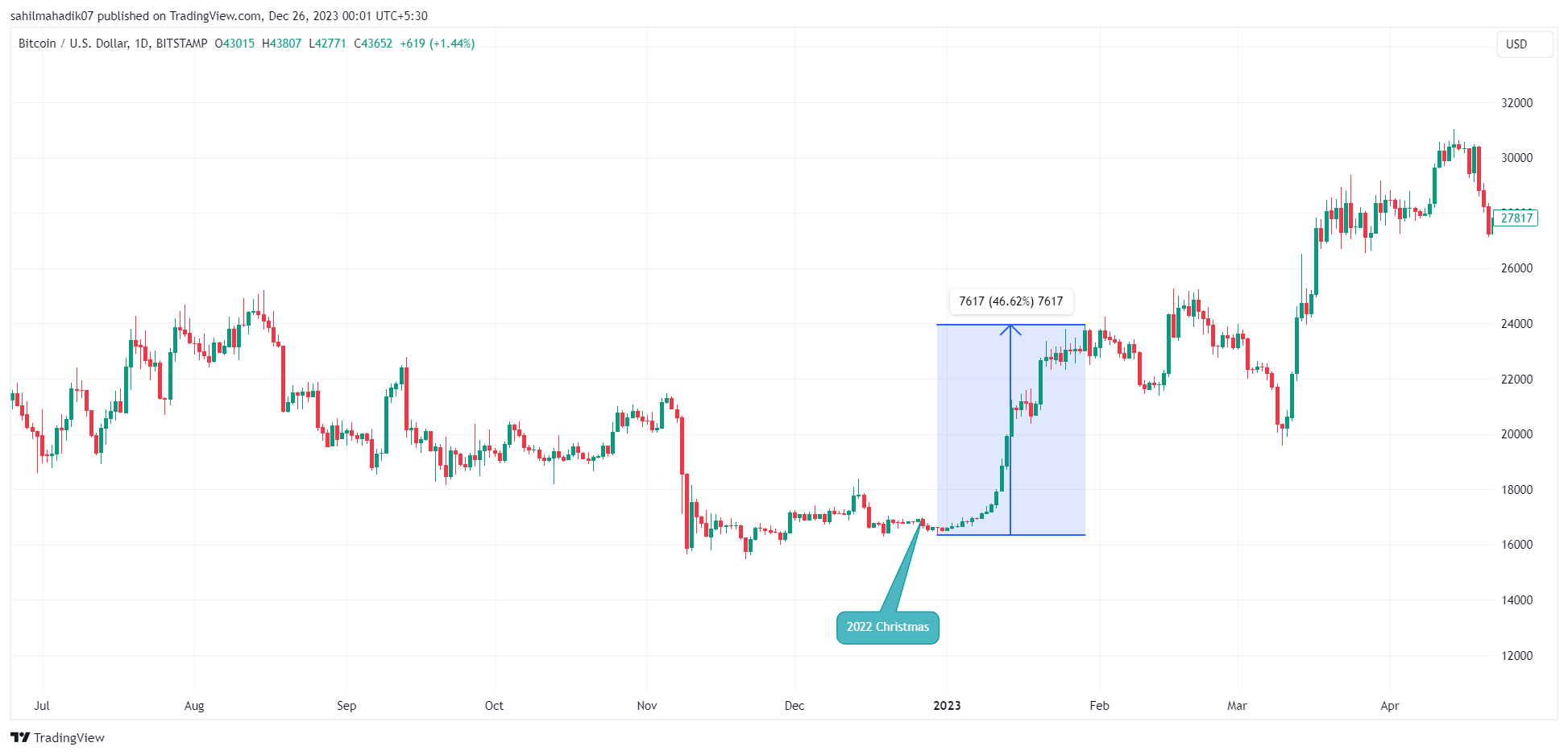 Simultaneously, there’s growing anticipation within the crypto community about the potential approval of a Bitcoin spot ETF. The sanction of such an exchange-traded fund would be a significant milestone, potentially opening the floodgates for institutional investment into Bitcoin. If this approval aligns with the Christmas period, it could coincide with the seasonal increase in market activity, potentially amplifying the effects on Bitcoin’s value.