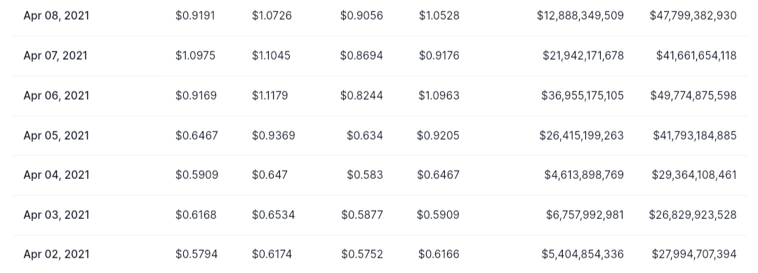The first metric is the “total estimated daily transaction volume.” This typically refers to XRP’s 24-hour volume. We provided $0.04 trillion ($40 billion) here. This figure is achievable, seeing as XRP’s highest 24-hour volume is $36.95 billion, achieved on April 6, 2021.
