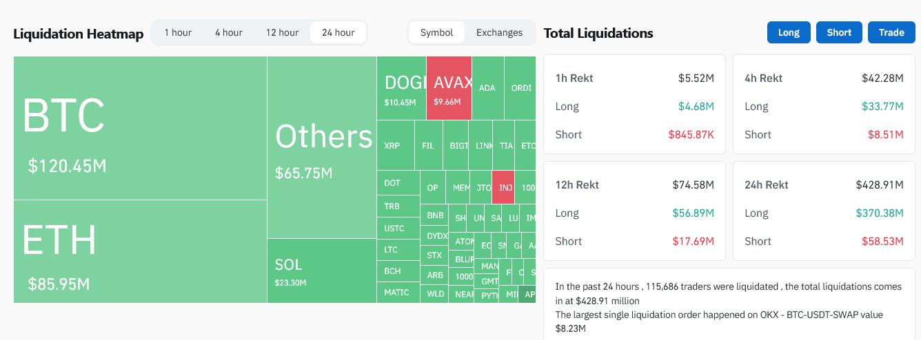 Besides the heightened volatility and likelihood of potential profit-taking volatility, the resulting correction also led to some liquidation. According to Coinglass data on December 11, the flash crash saw over $105 million of leveraged long positions liquidated.